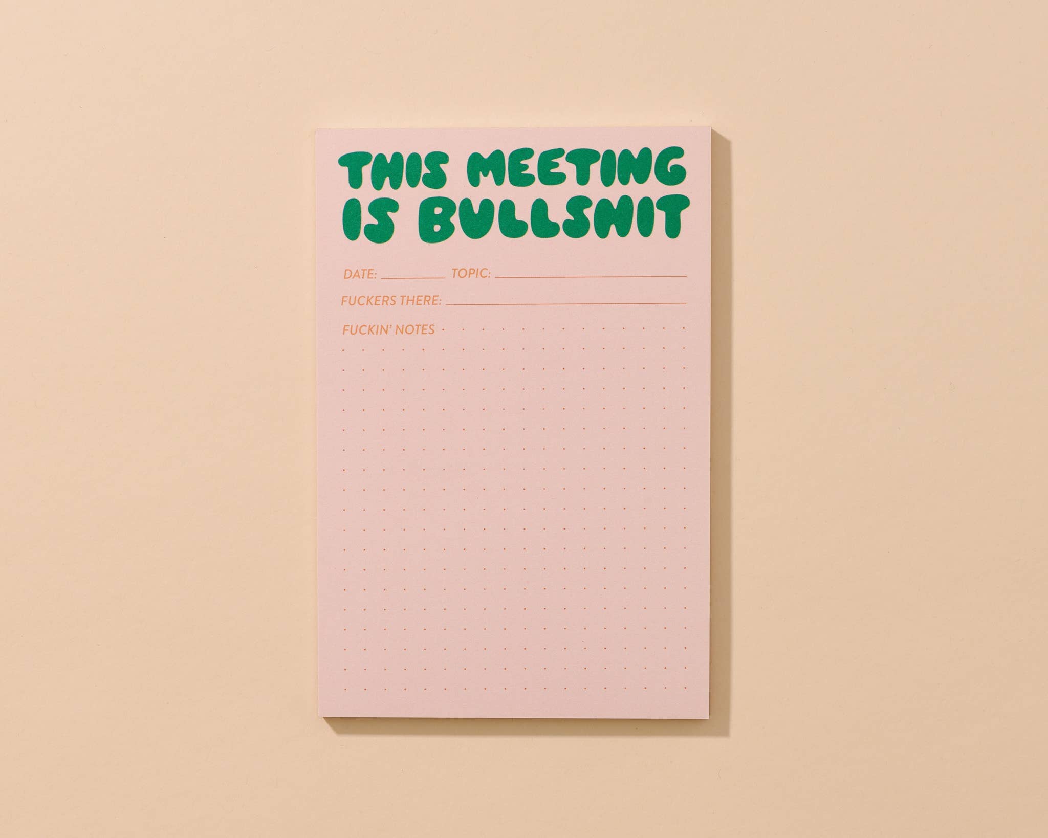 The perfect accessory for Zoom meetings so you can write out all your angst to look really, really busy without offending a damn soul. Just make sure it's out of that webcam, baby. This 50 page 4" x 6" notepad has spots for you to include the date, topic and fuckers at the meeting and then a dot grid area for all your fuckin' notes.