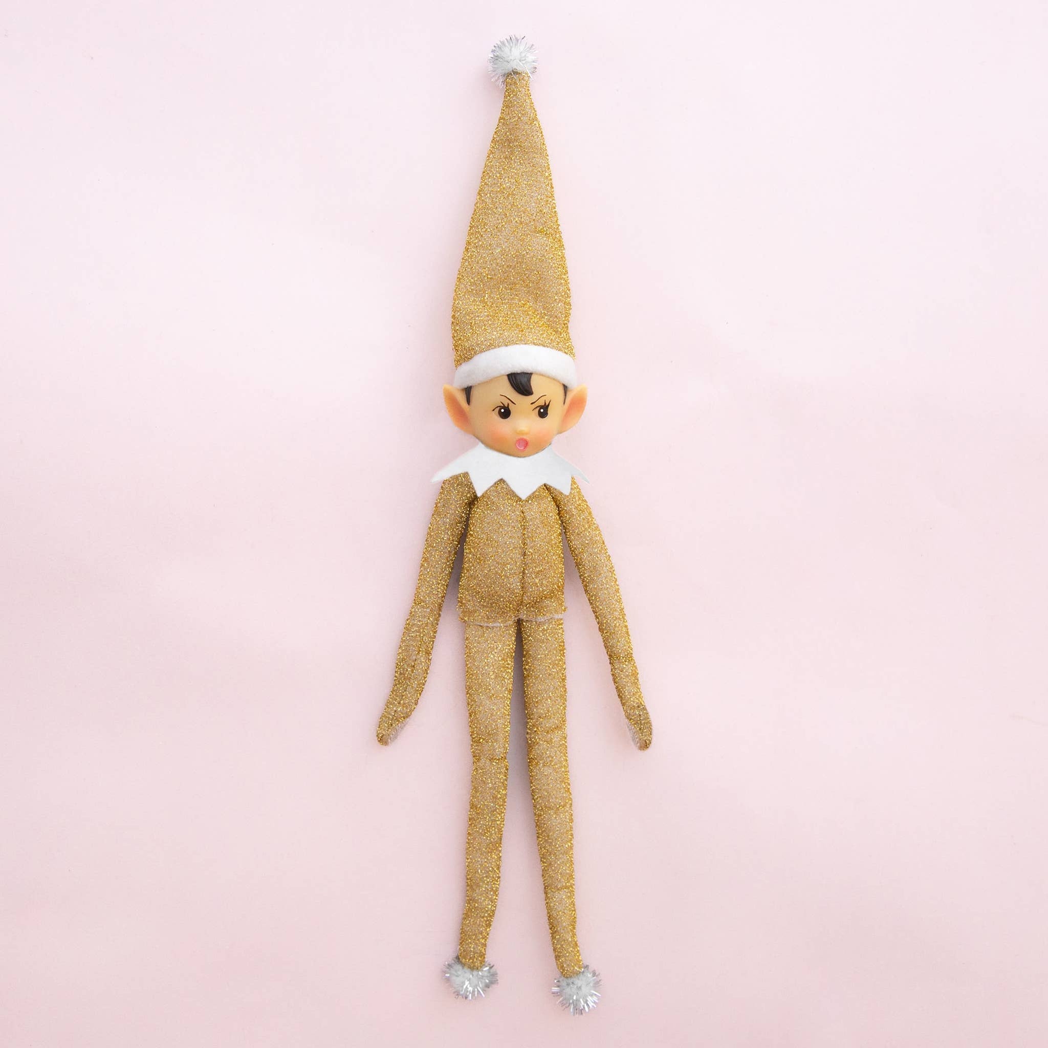 Deck the halls with this mischievous Elf Ornament, Tinsel Todd! Featuring velcro hands and bendable limbs, you can pose this cheeky elf any way you like. Its festive tinsel collar and pompom accents add extra sparkle, making it a playful and charming addition to your seasonal decorations.