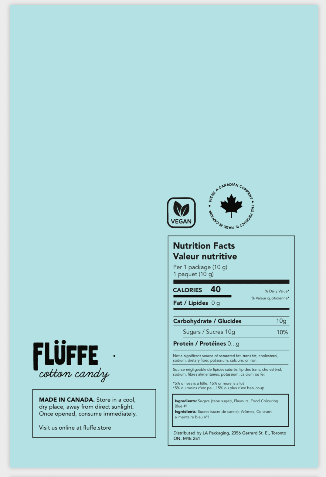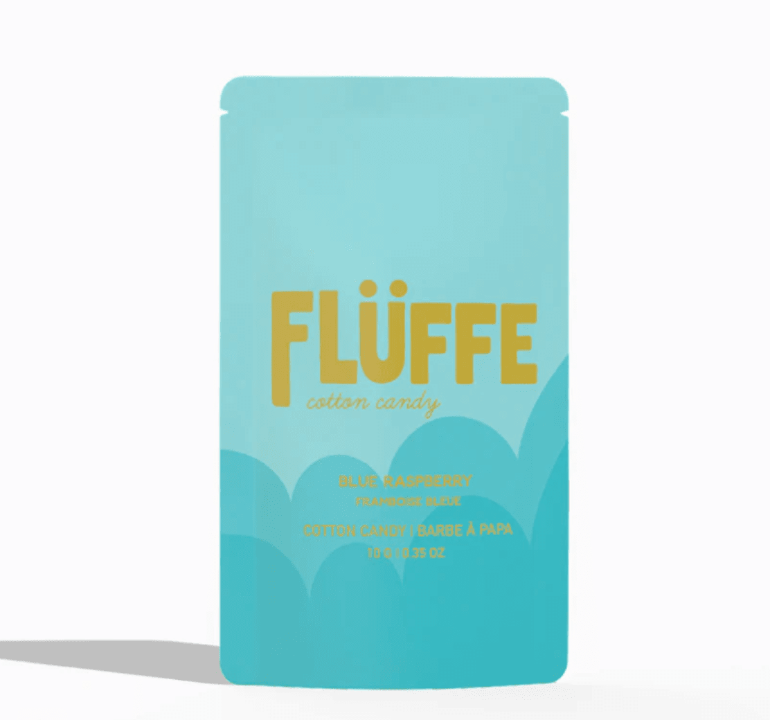 Each package of Flüffe is a single serving of cotton candy that is gluten-free, nut-free and vegan.