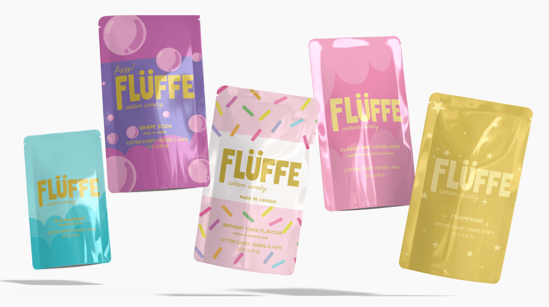 Each package of Flüffe is a single serving of cotton candy that is gluten-free, nut-free and vegan.