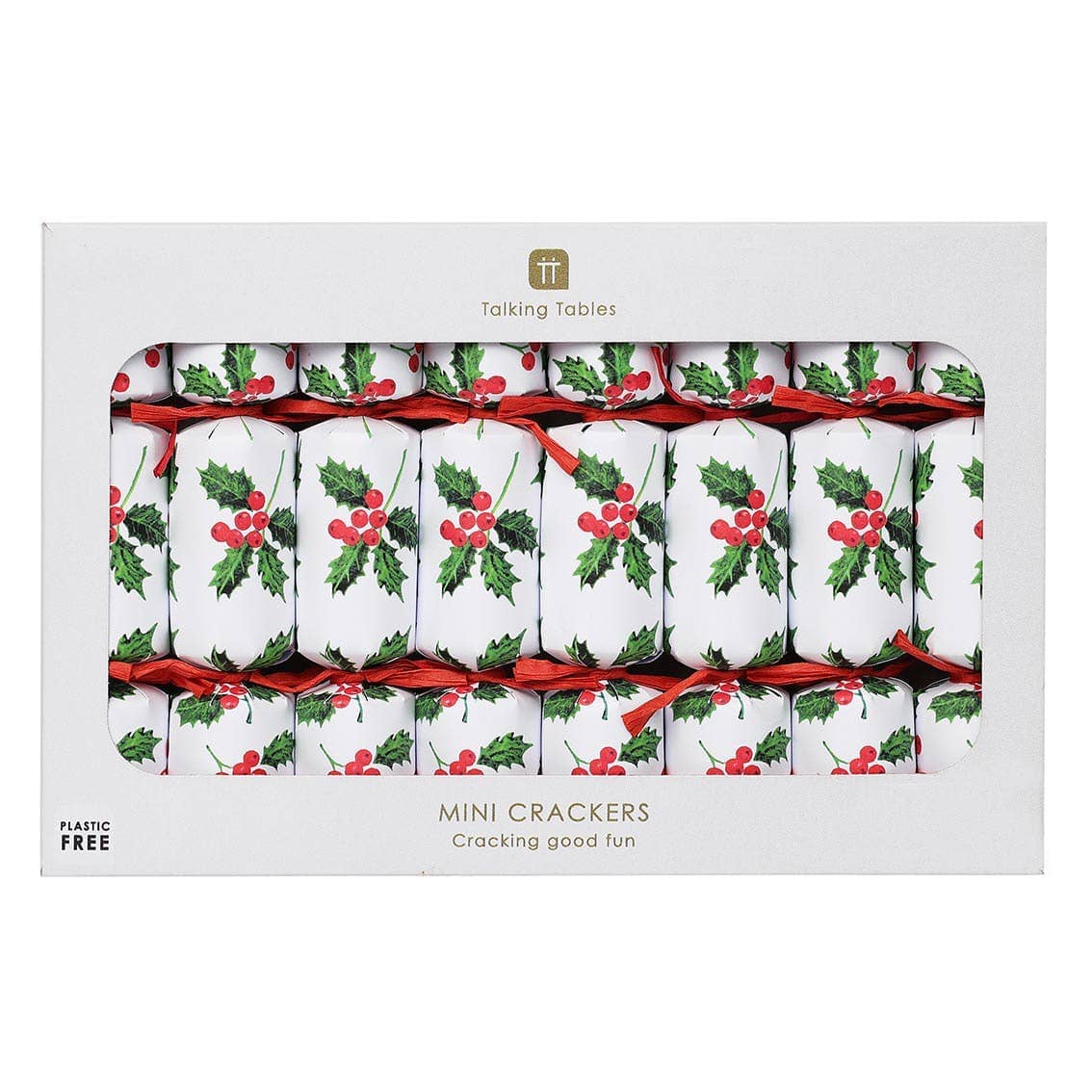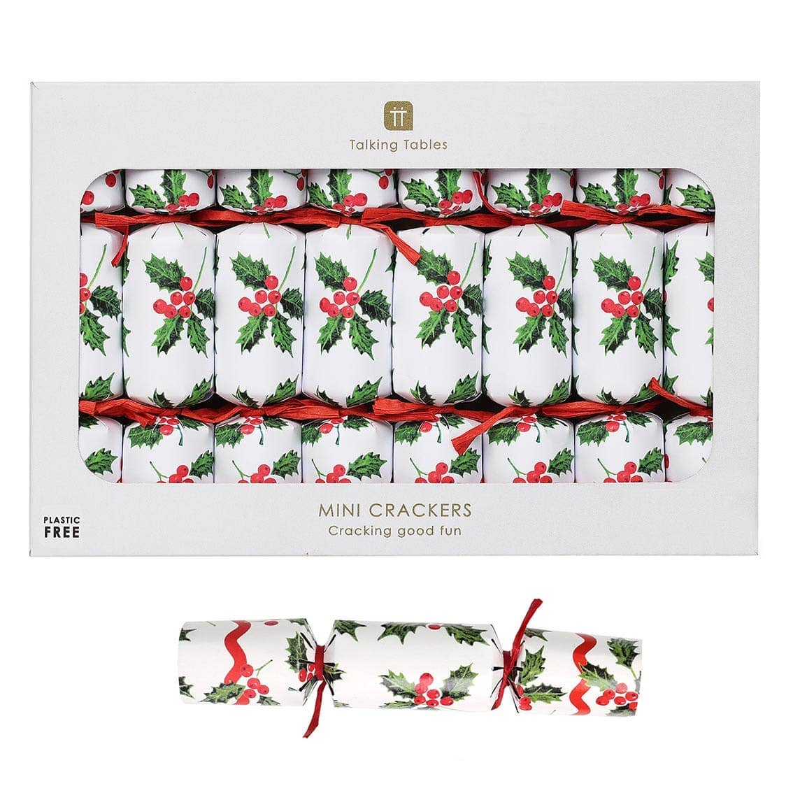 These mini crackers feature a holly pattern on a white base just like its larger variant. The crackers are recyclable and come in a pack of 8, ideal for larger families.