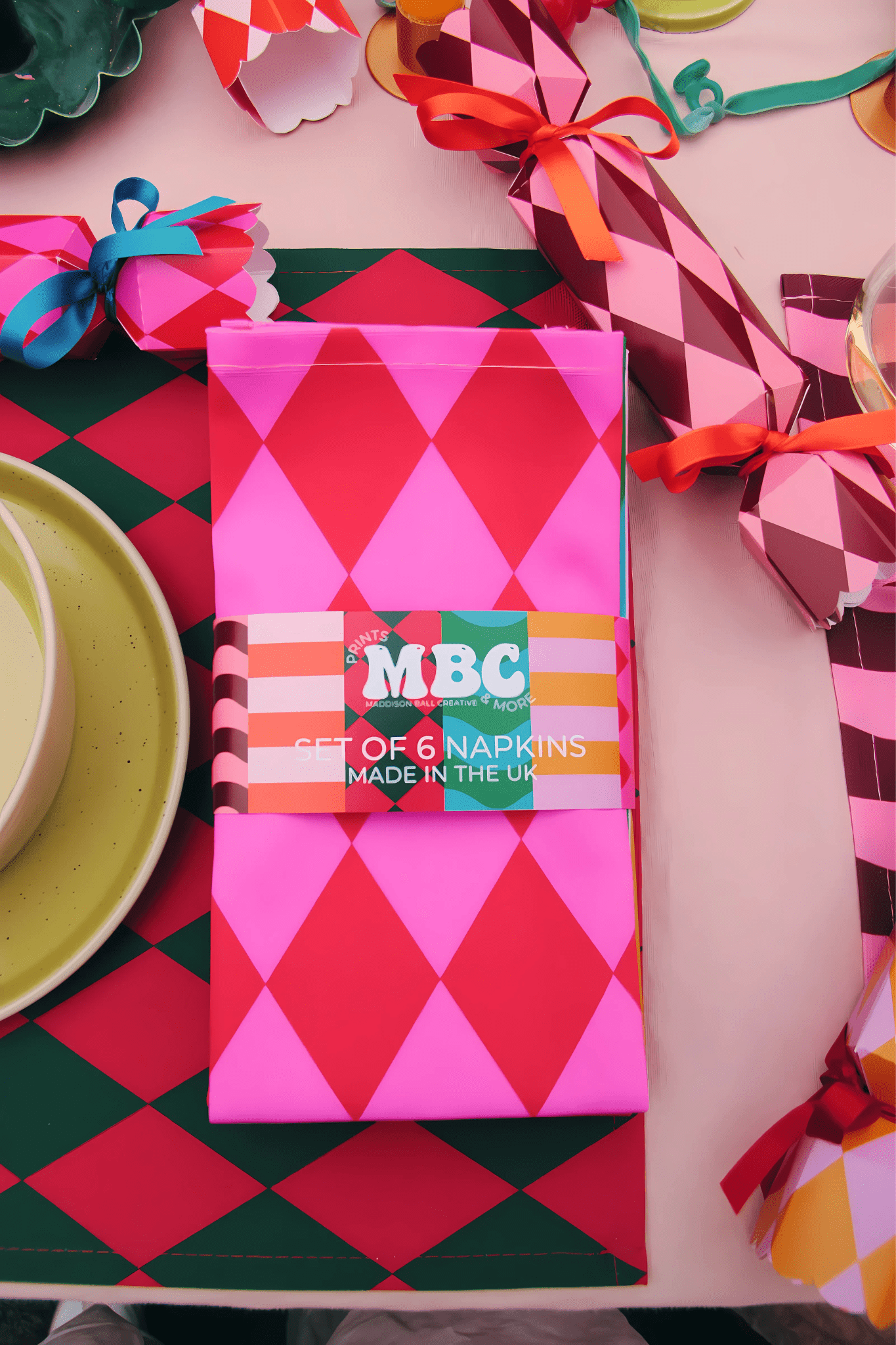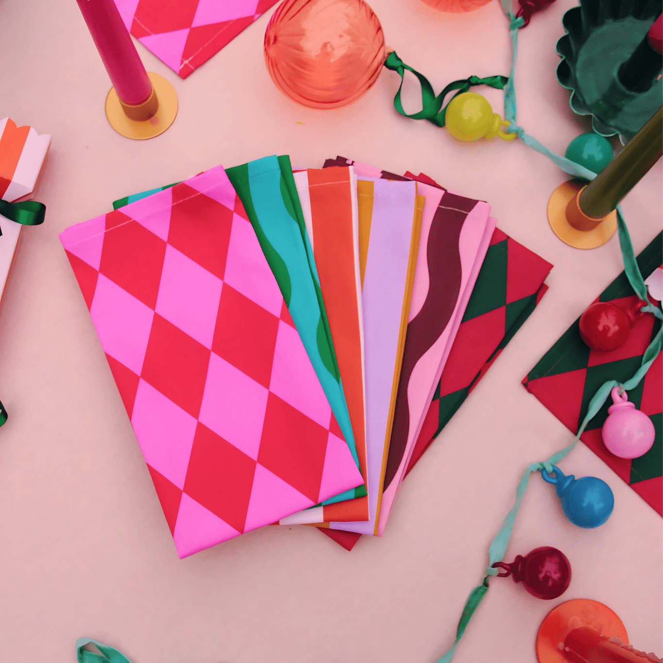 Made from 100% cotton stripe, checkered and harlequin designs in a festive colour palette, this set of 6 is perfect for adding a modern twist to your holiday décor. Whether you’re setting the table for Christmas dinner or using them as stylish napkins for your festive feast, these pieces will make your holiday gatherings feel extra special.