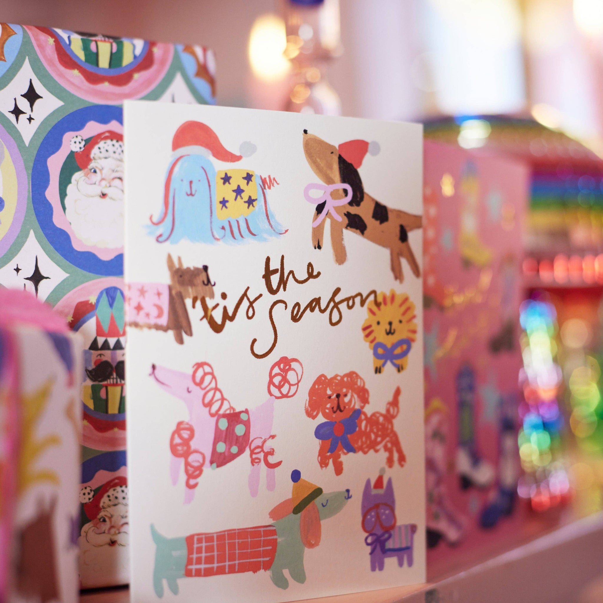 Spread holiday cheer with our Tis' The Season Dogs Card! Featuring festive dog illustrations and a 'Til the season' message in gold foil, this card is perfect for furry friends or dog lovers.