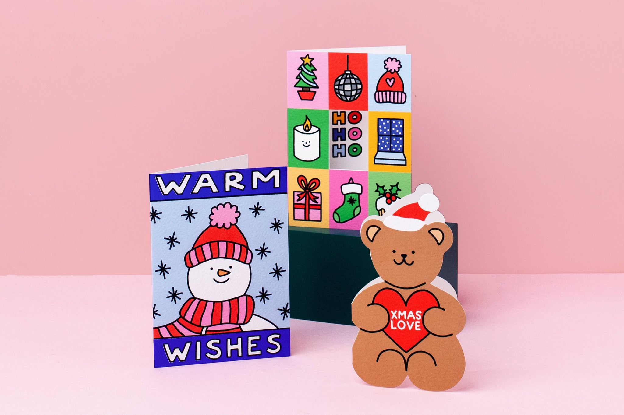 Blank Inside Send warm and festive greetings with this cheerful "Warm Wishes" Christmas card, designed in collaboration with Rosie Pink. Featuring a cute snowman dressed in a cozy hat and scarf, surrounded by playful snowflakes, this card radiates holiday warmth.