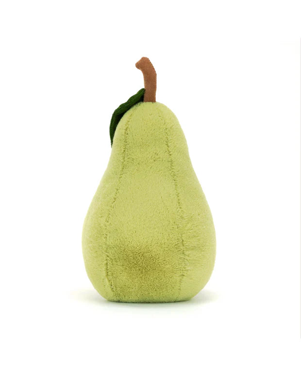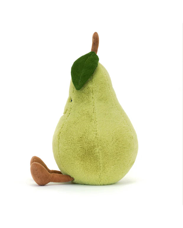 With fresh green fur, chocolate cord boots and a gorgeous chubby tummy, Amuseables Pear has good reason to smile! With a weighted base, woody stalk, and dark-green cord leaf, this pear makes an excellent kitchen mascot!