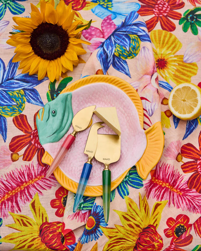 Dressed to impress, the Bejewelled Cheese Knife Set is the shining star of your entertaining spread. With coloured resin handles that glisten like gems, this three-piece set is a trio of treasures. Perfect for slicing, spreading, and serving up your favourites, these knives make every cheeseboard feel like a celebration. From brie to blue, cheddar to camembert, this dazzling set is your ticket to entertaining in technicolour.