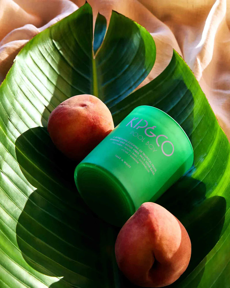 A refreshing cocktail of tropical fruits, sunshine and good vibes. Pack your bags. Cucumber, peach, basil, watermelon, lychee, sunshine. Our Pool Boy candle is a fresh and lightly fragranced soy candle with notes: