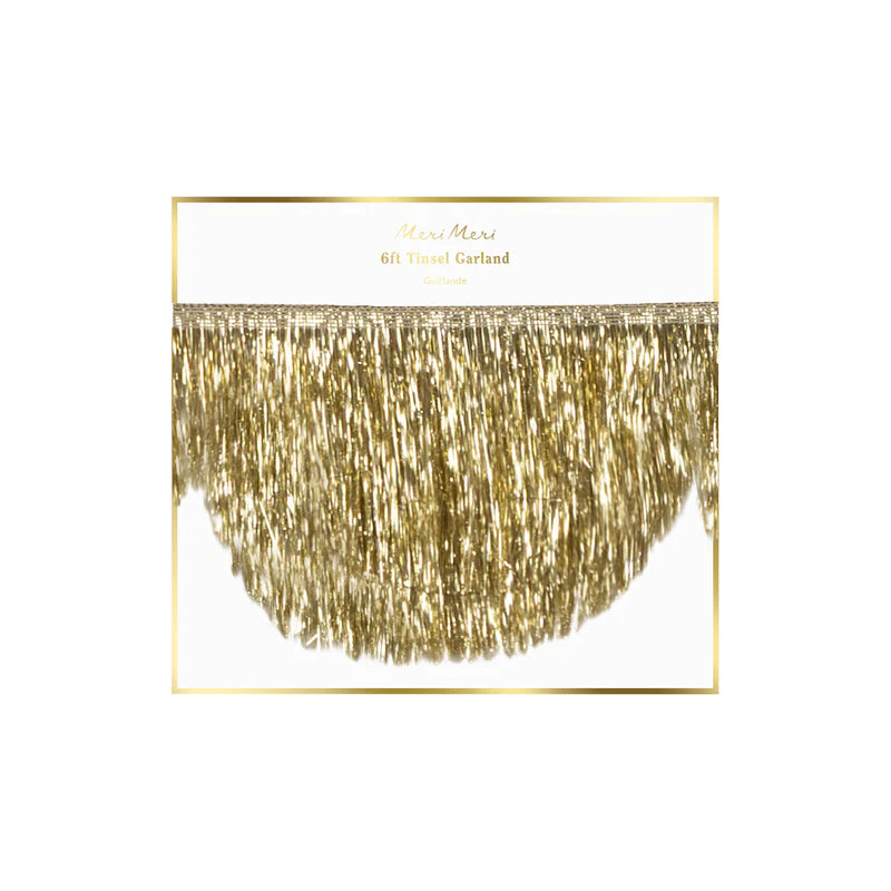 Tinsel is back in style, so let this shimmering decoration add joy and cheer to your home for a chic Christmas and New Year! Made with a stylish scalloped shape, this two-tiered gold garland with a gold glitter ribbon will look dazzling on your mantel, in the window or swaying on the porch. Reusable, bring it out year after year to add sparkle to this special season.