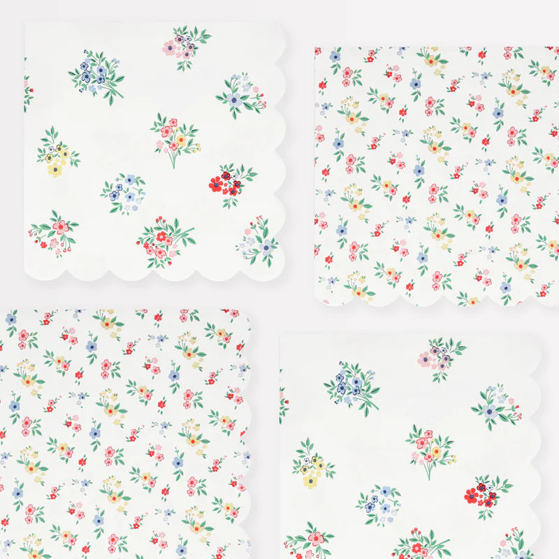 Dainty posy bouquets and ditsy floral clusters add effortless elegance to any setting. These classic designs are influenced by fashion-forward floral pattern trends, which include a touch of red to keep the look modern and fresh. These large paper napkins are ideal for table layering at garden parties, baby showers, bridal showers or wherever you want a sophisticated effect.