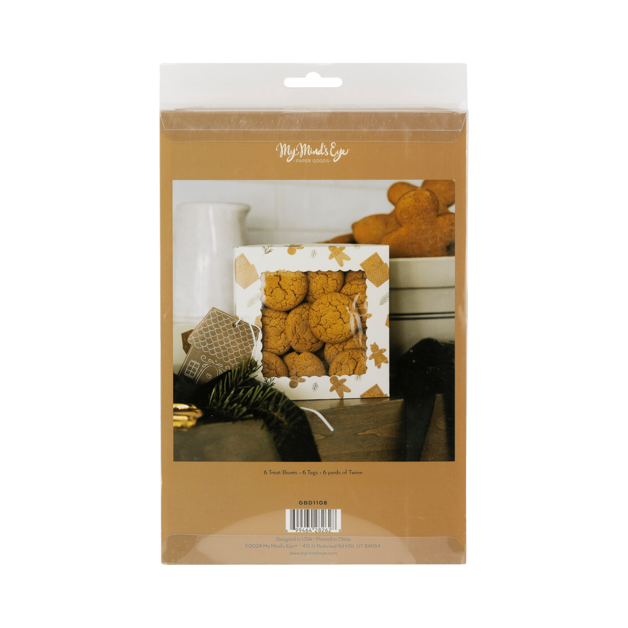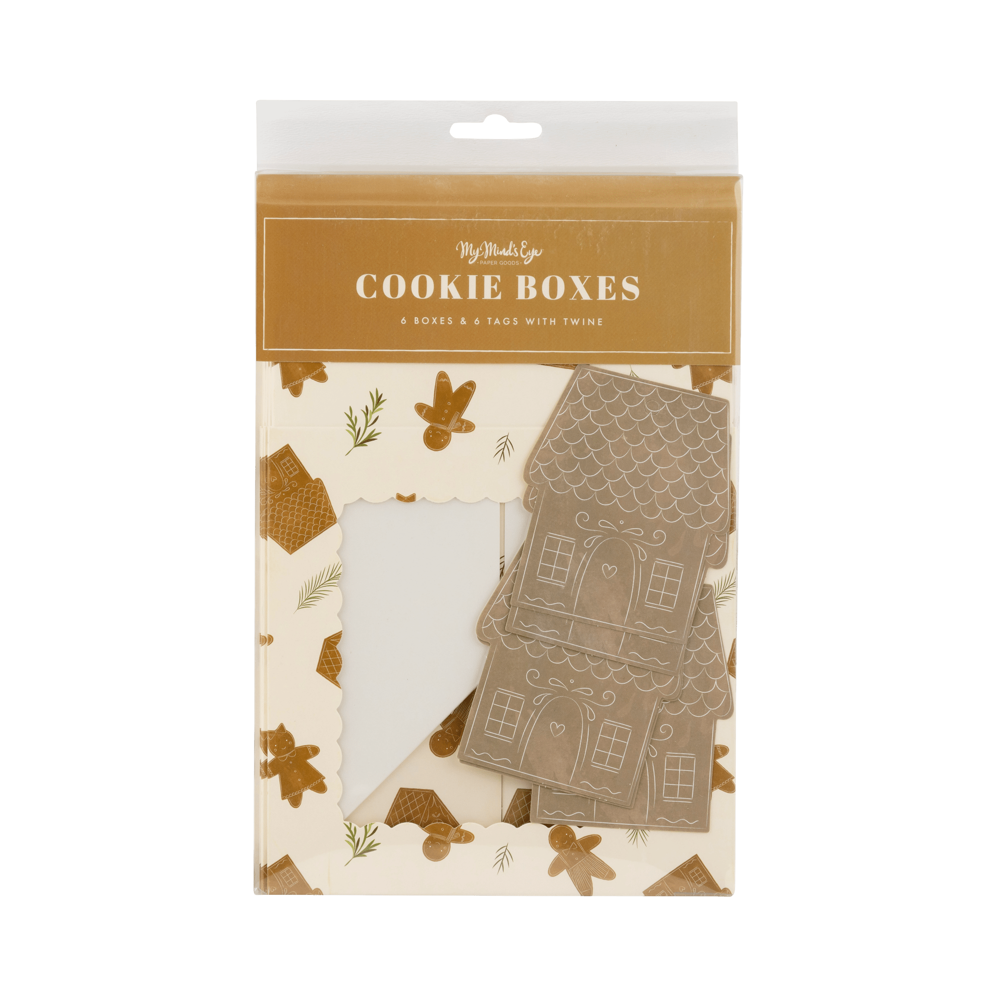 Includes 6 paper cookie boxes with window • approximately 6 x 6 x 3 • includes 6 paper tags with twine