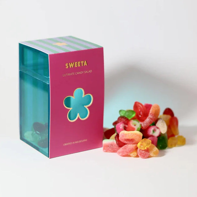 Warning: May cause extreme happiness! Our Ultimate Candy Salad is a super-duper mix of all the sweet, juicy, and yummy treats you could dream of. It's designed to bring smiles and make every moment a little brighter. Dig in and feel the joy!