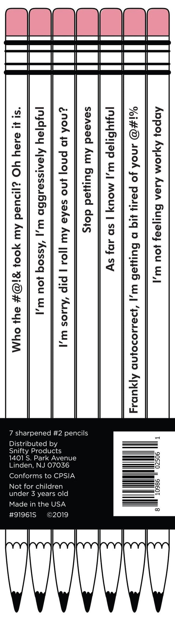 Work it with these witty pencils! Carded set of 7 sharpened #2 pencils in cello bag
